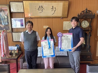 国スポでの活躍を校長先生に報告しました