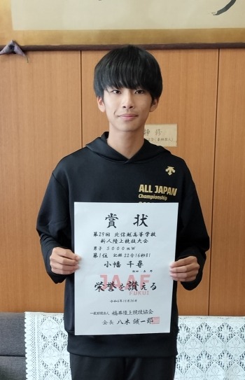 北信越新人大会にて、男子5000m競歩で優勝しました。